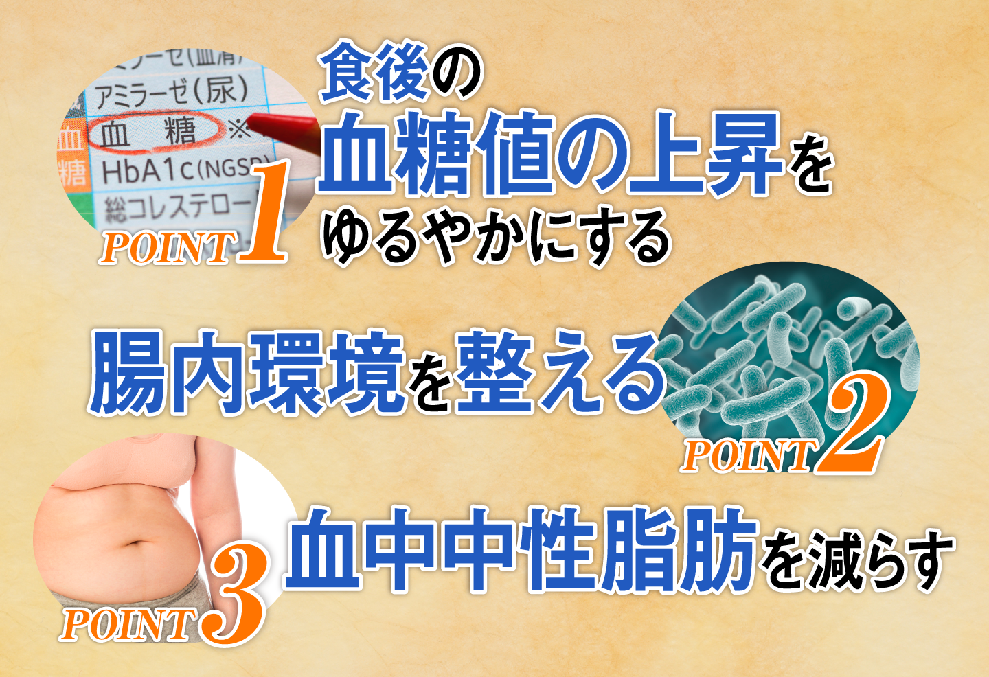 イヌリンは胃腸を通過する際に水分を吸収してトロトロのゲル状になり、胃や小腸で吸収されずゆっくり移動しながら余分な炭水化物や糖分の吸収を抑えることで食後の血糖値の上昇をゆるやかにします。