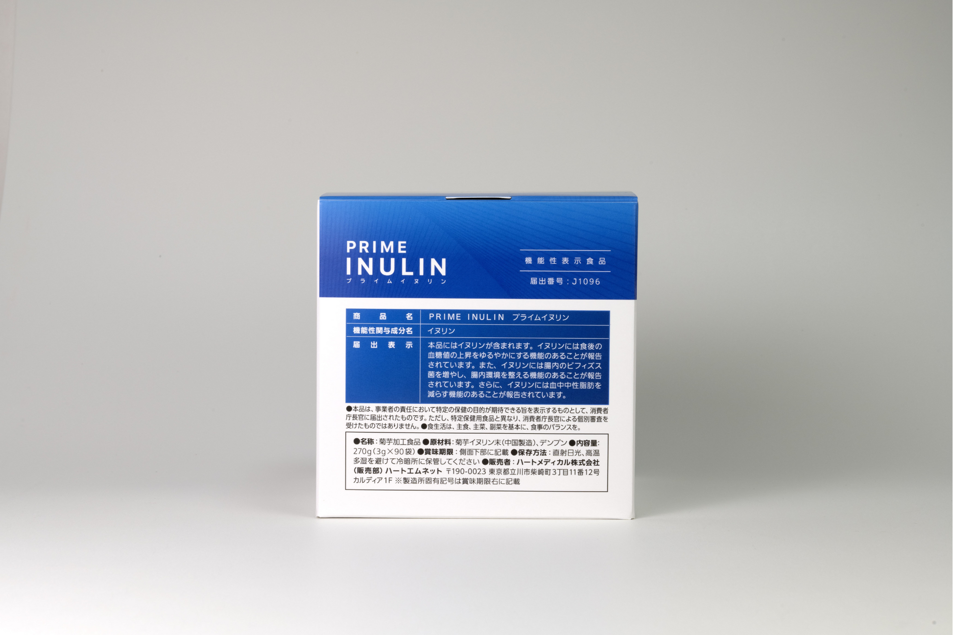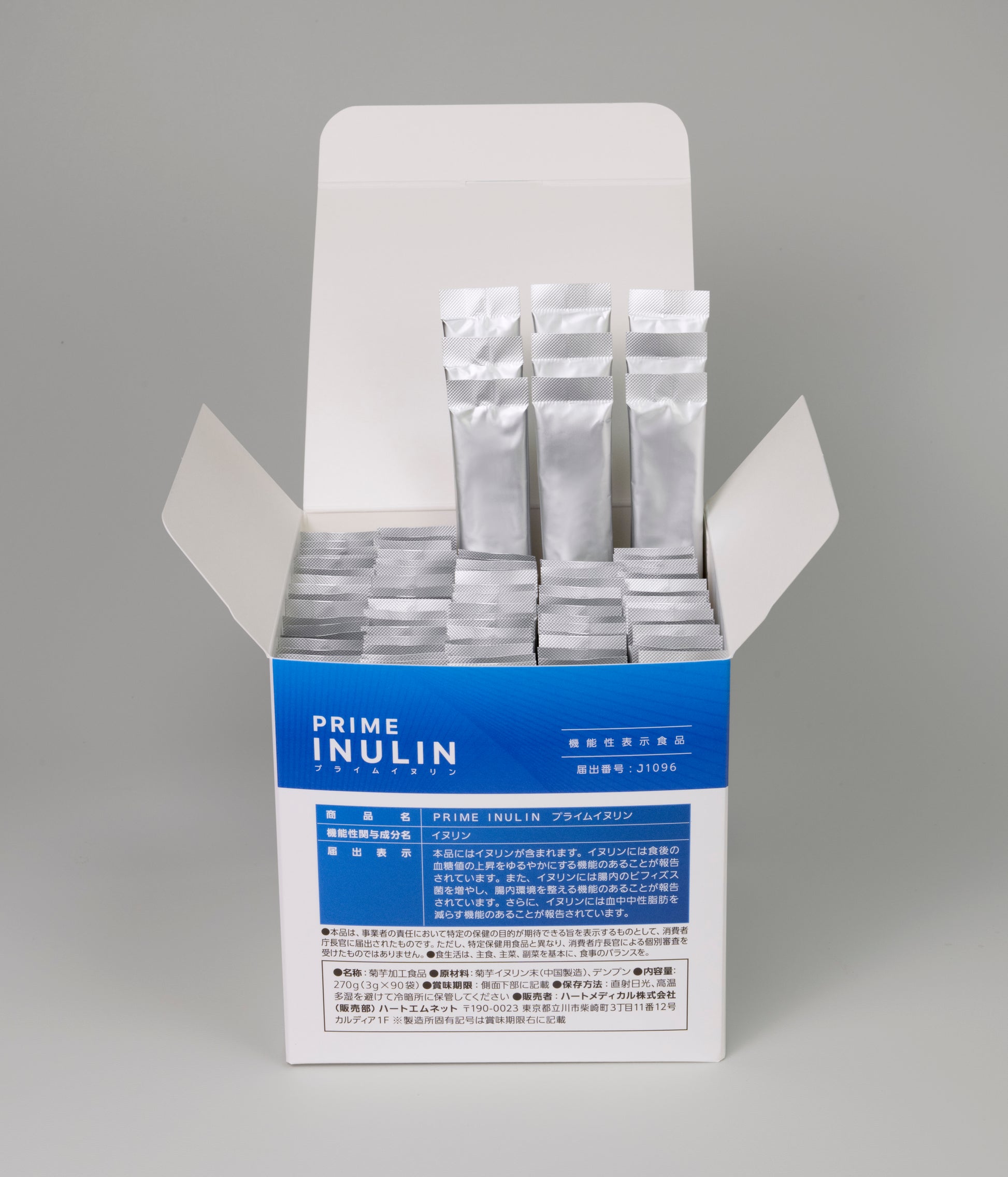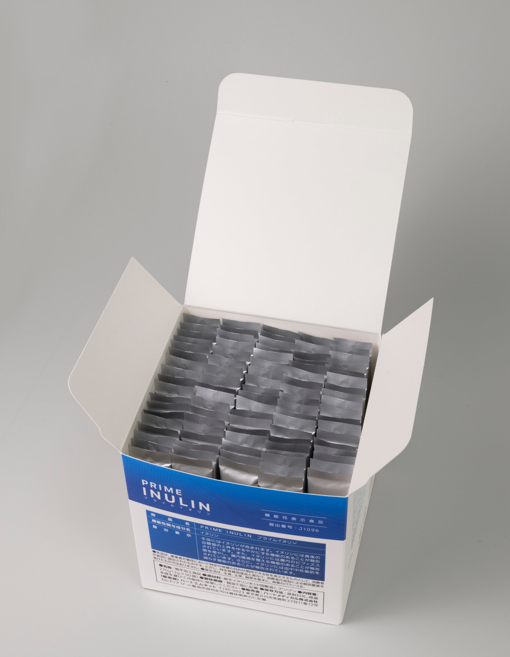 機能性表示食品の「プライムイヌリン」は、機能性成分イヌリンを重点的に抽出し、1袋(3g)中2210mgと業界トップクラスの含有量を誇ります。